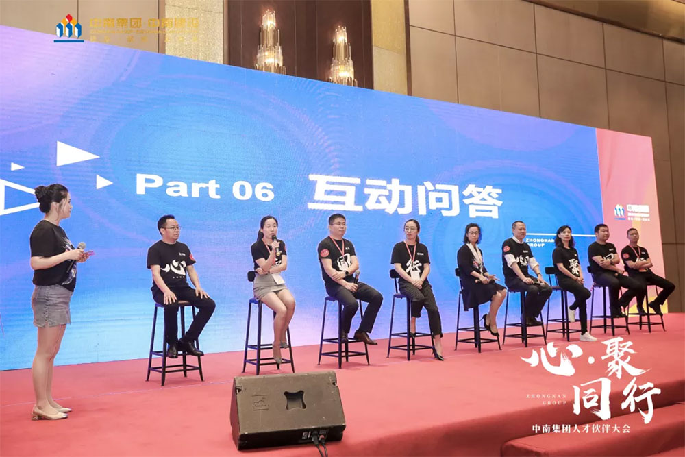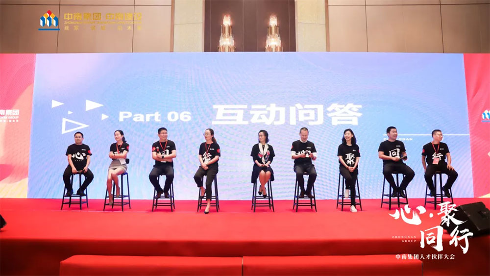 中南控股集團(tuán)董事局董事、高級(jí)副總裁陸忠亮及中南置地綜合人力中心總經(jīng)理宮金玉、中南建筑副總裁向榮、中南建投副總裁張立泉、中南高科副總裁周磊、中南土木人力資源負(fù)責(zé)人苗興剛、中南園林人力資源負(fù)責(zé)人吳霜霜、中南金融人力資源負(fù)責(zé)人邢曉巖、中南工業(yè)人力資源負(fù)責(zé)人楊冰、中南教育人力資源負(fù)責(zé)人朱铦錟,針對(duì)臺(tái)下合作伙伴關(guān)于戰(zhàn)略目標(biāo)、資源共享、合作方式等的問(wèn)題,進(jìn)行了針對(duì)性地解答。